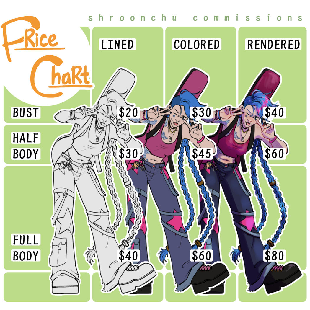 For other types of commissions such as vtube model art, rigging, or video editing, please reach out to me to discuss pricing!